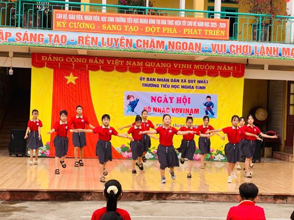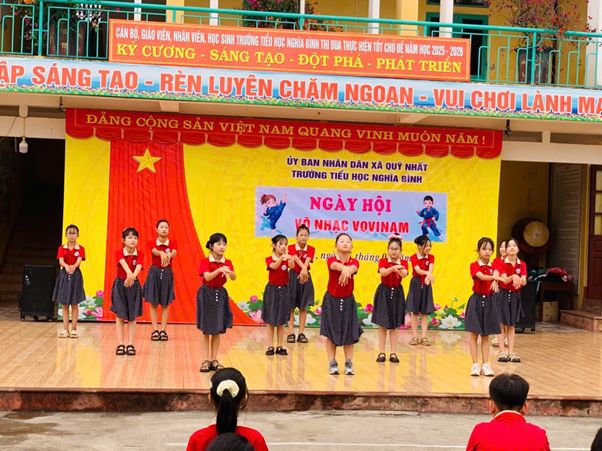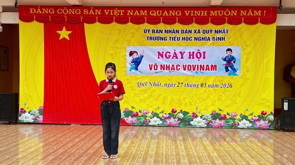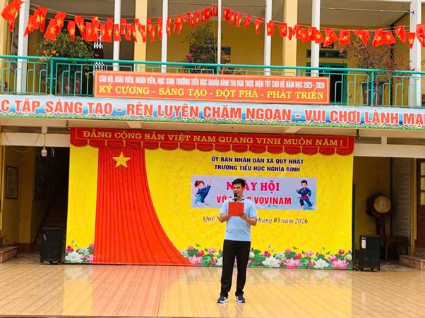 Trong không khí thi đua sôi nổi chào mừng những ngày tháng Ba lịch sử, vào lúc 9 giờ ngày 27/3/2026, chương trình Ngày hội Võ nhạc Vovinam đã được tổ chức đồng loạt tại tất cả các cơ sở giáo dục trên địa bàn tỉnh Ninh Bình. Hòa chung không khí đó, Trường Tiểu học Nghĩa Bình đã trở thành một điểm cầu đầy màu sắc, năng động và giàu tinh thần võ đạo.