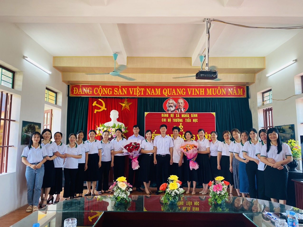 Trước Đảng kỳ, quốc kỳ và chân dung Chủ tịch Hồ Chí Minh vĩ đại, trước toàn thể các đồng chí Đại biểu và Đảng viên trong chi bộ, hai đồng chí đã tuyên thệ luôn luôn ghi nhớ và thực hiện đầy đủ 4 nhiệm vụ và quyền hạn của người Đảng viên.