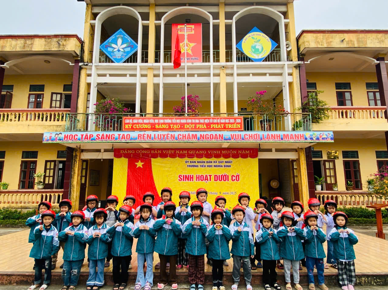 Chúng em xin gửi lời cảm ơn chân thành và sâu sắc nhất đến Tập đoàn xe máy Honda Việt Nam đã quan tâm, đồng hành và tài trợ mũ bảo hiểm cho học sinh lớp 1 trên khắp cả nước – trong đó có chúng em, học sinh Trường Tiểu học Nghĩa Bình. Nhờ có món quà ý nghĩa này, chúng em không chỉ có một chiếc mũ đẹp và chắc chắn, mà còn được nhắc nhở mỗi ngày về ý thức tham gia giao thông an toàn.
